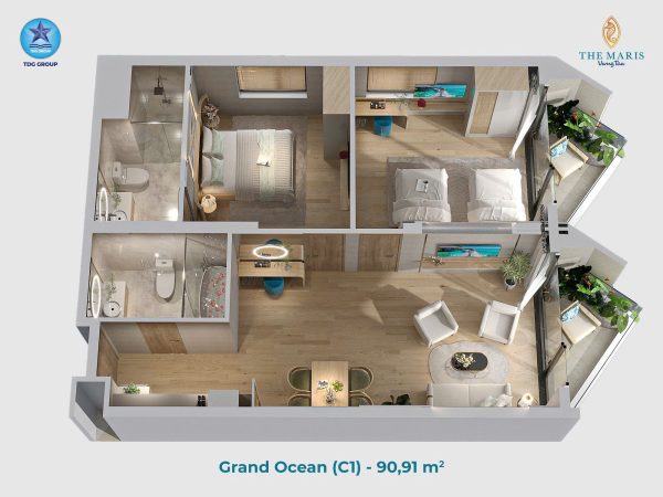 - Căn 2PN 91m2 View Biển: giá từ 8 tỷ đến 9,5 tỷ