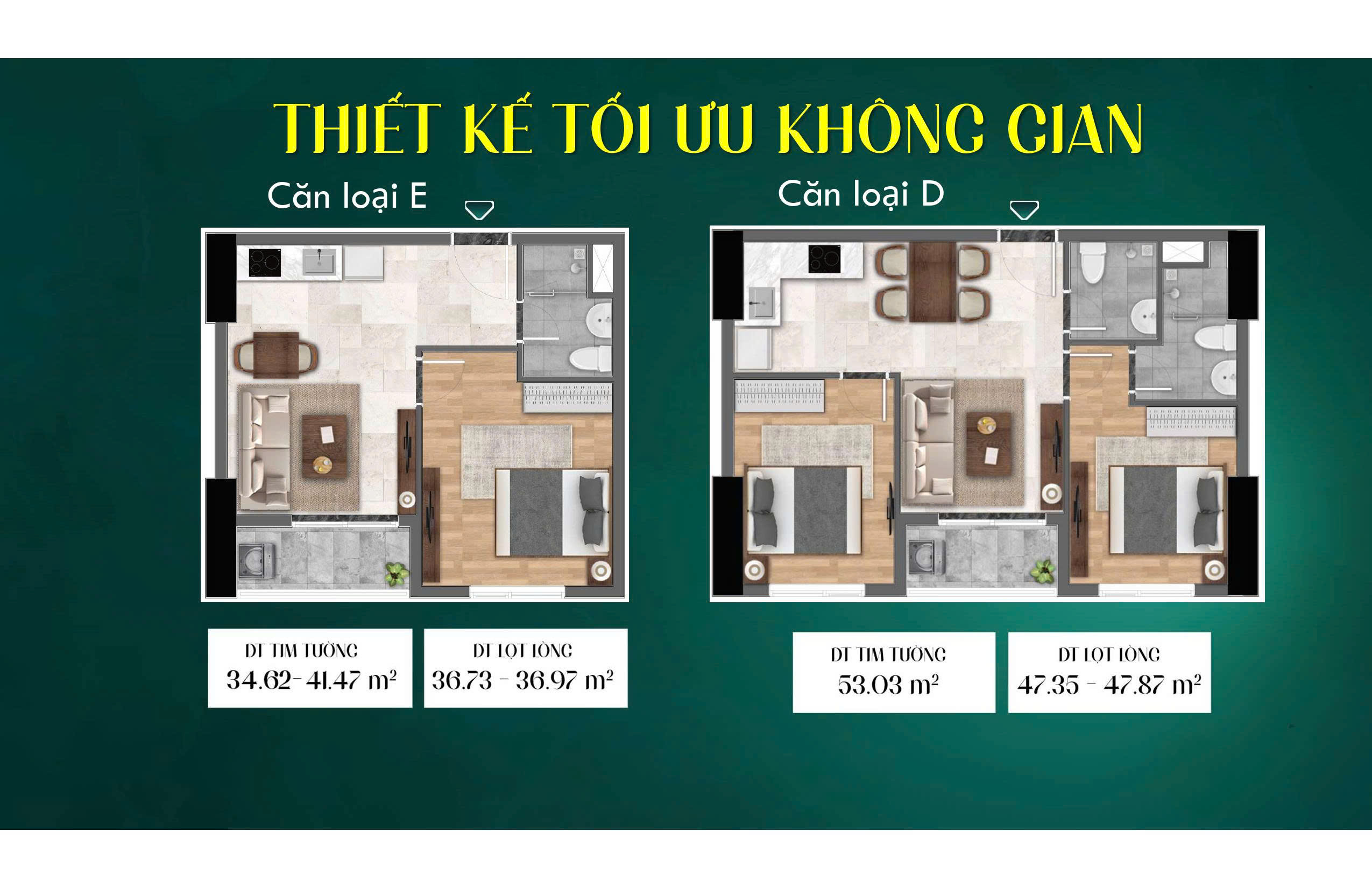 - Căn hộ 1PN: 34,62m2, 35,58m2.