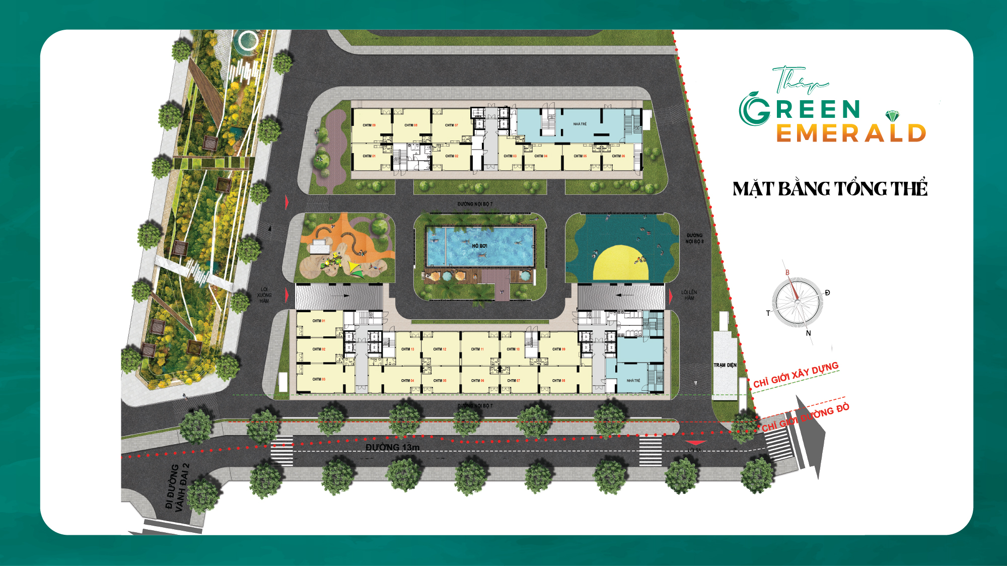 GREEN EMERALD – Tháp căn hộ kế tiêp trong khu phức hợp Bcons City được Tập Đoàn Bcons ra mắt thị trường sau thành công của Tháp Green Topaz, Tháp Bcons City. Sở hữu vị trí đắc địa ngay trung tâm nội khu, Tháp Green Emerald được thừa hưởng nhiều tiện ích nội khu hiện hữu trong khu phức hợp Bcons City.
