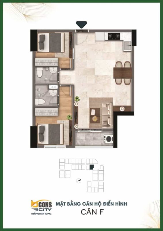 | 2 PN – 2 WC | 55 – 56 m2 | 1,8 – 1,85 tỷ |