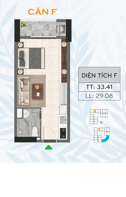 | 1 PN – 1 WC | 33.41 m2 | 1,402 tỷ |