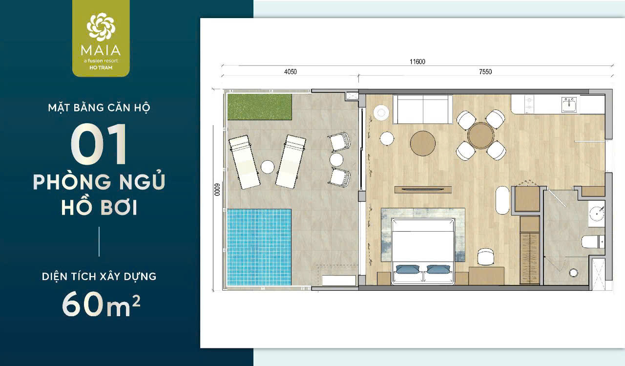Chỉ còn lại 2 căn 1PN Pool cực hiếm (*A.03.05 và A.03.06*) *giá chưa đến 4,4 tỷ* – sản phẩm đặc biệt nhiều điểm nhấn Maia Resort Hồ Tràm