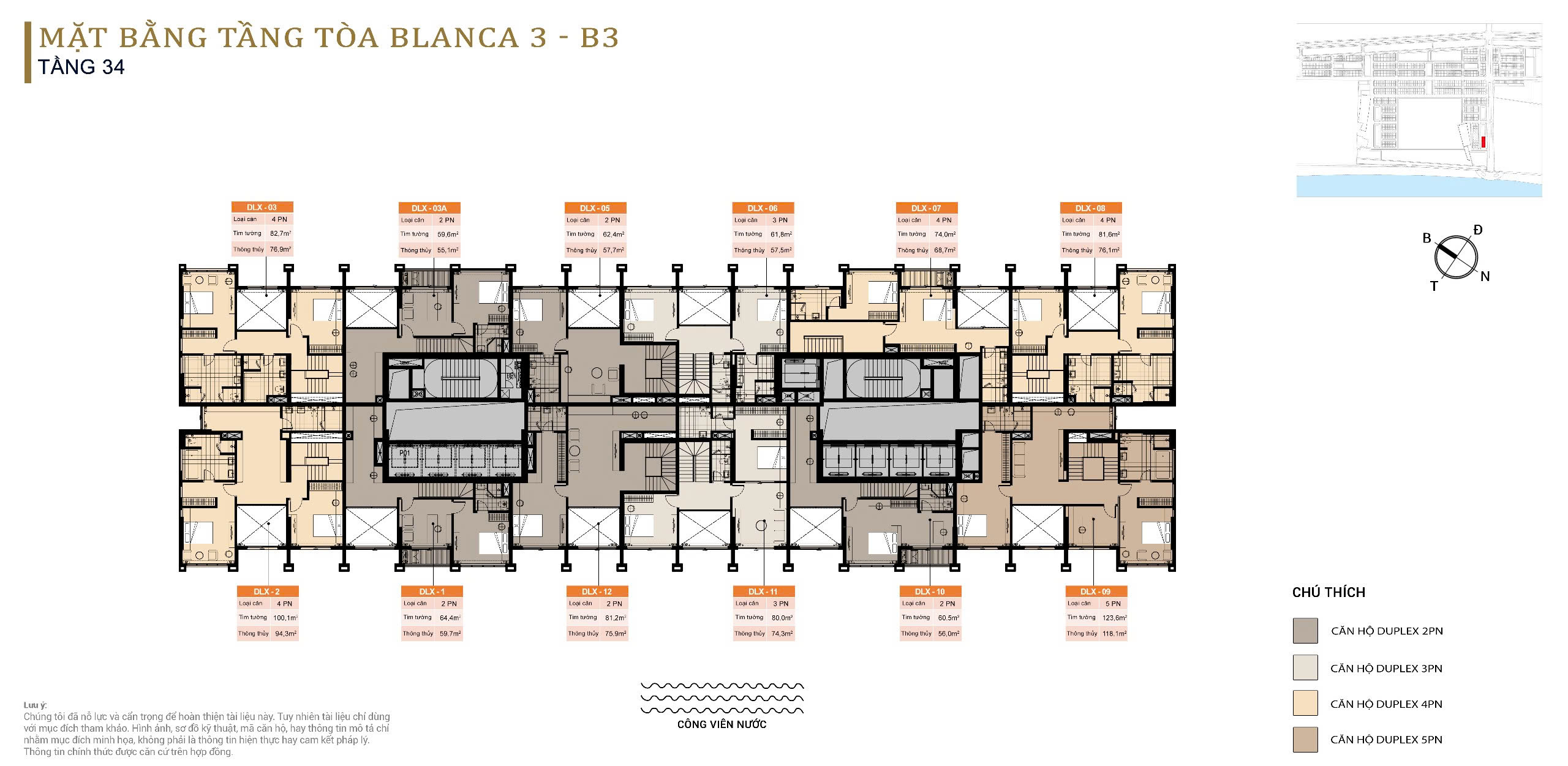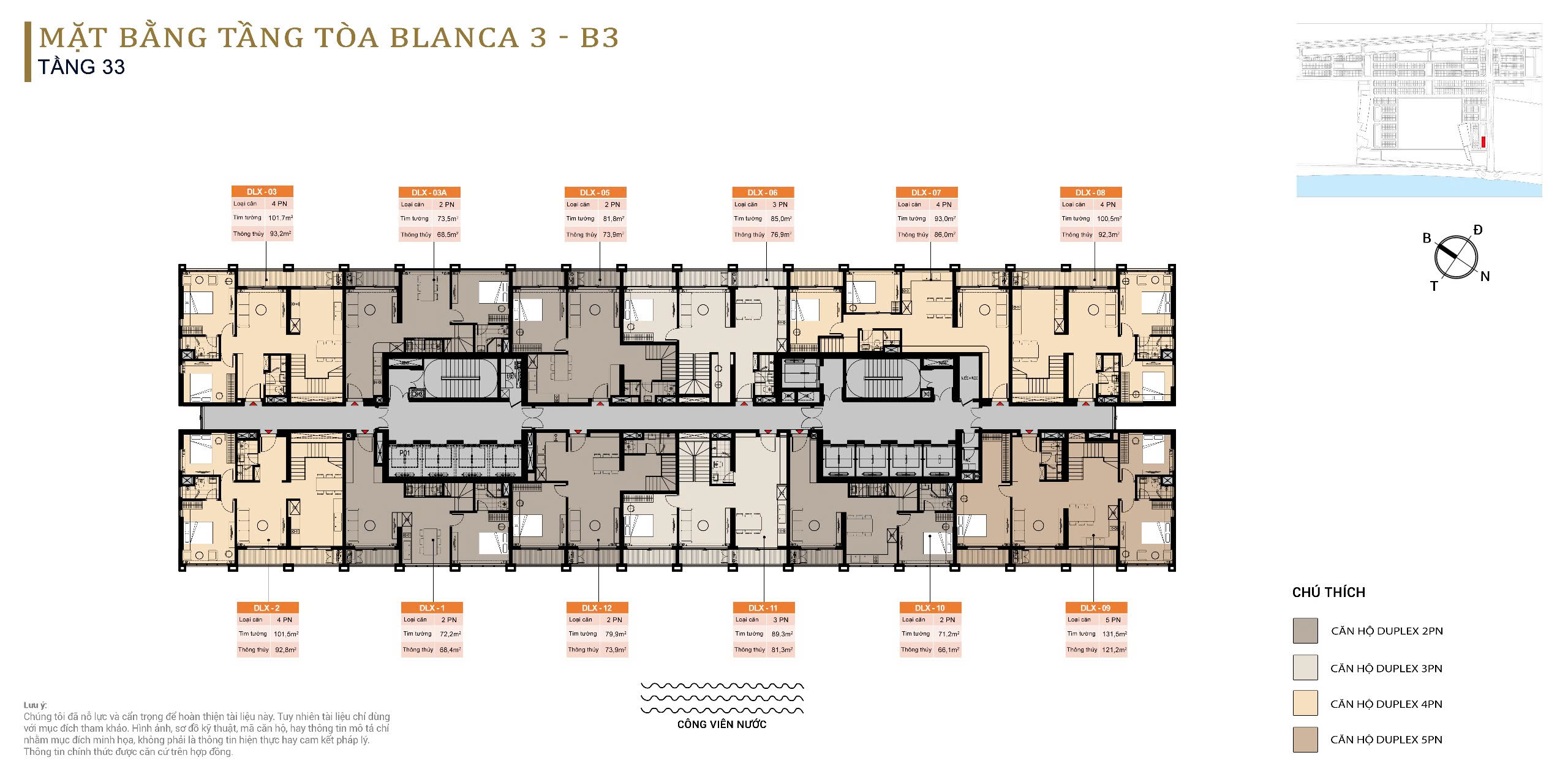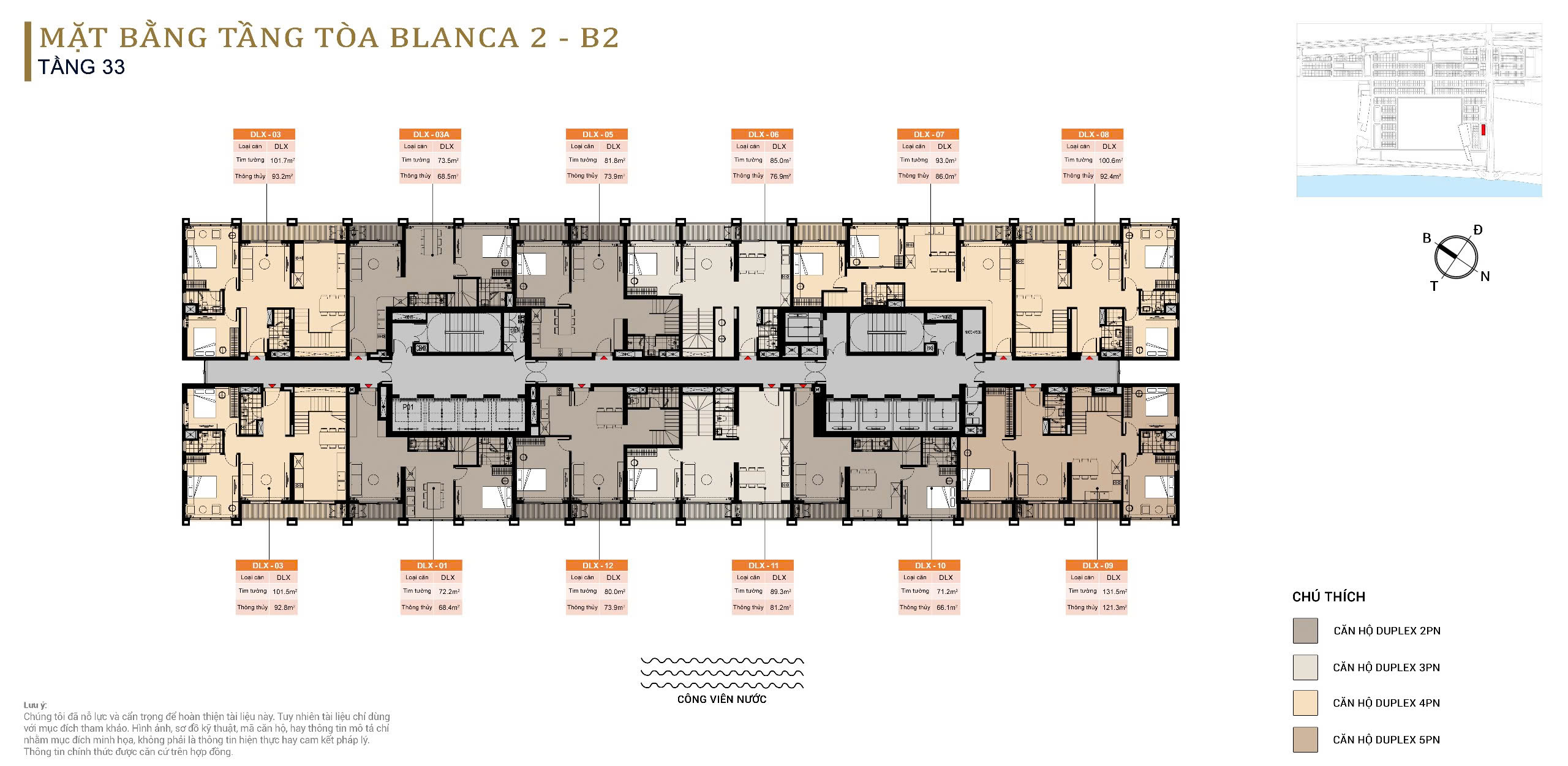 GIÁ BÁN VÀ DIỆN TÍCH CĂN HỘ DUPLEX BLANCA CITY
