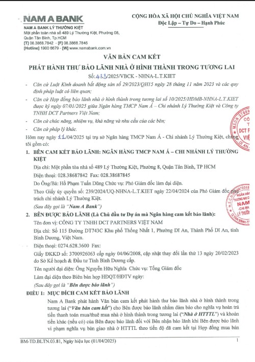 - Pháp lý: Giấy đủ điều kiện mở bán & Chứng thư bảo lãnh ngân hàng Nam Á Bank