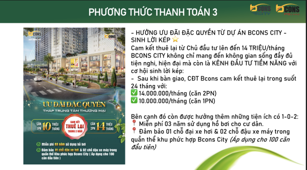 CHÍNH SÁCH ƯU ĐÃI VƯỢT TRỘI CHỈ CÓ Ở BCONS CITY