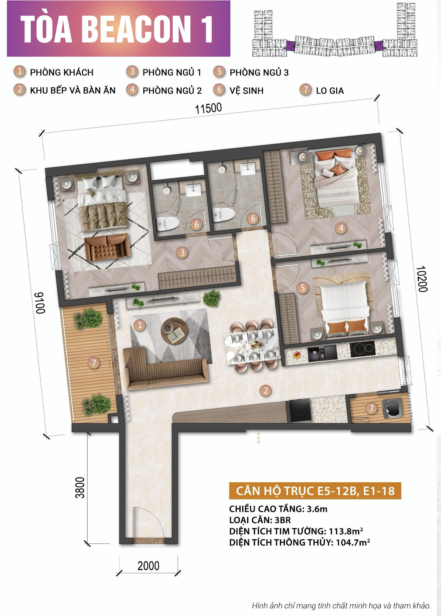 | Căn hộ 3PN | 101,1m² – 113,8m2 | 7,695 tỷ – 12,404 tỷ/căn |