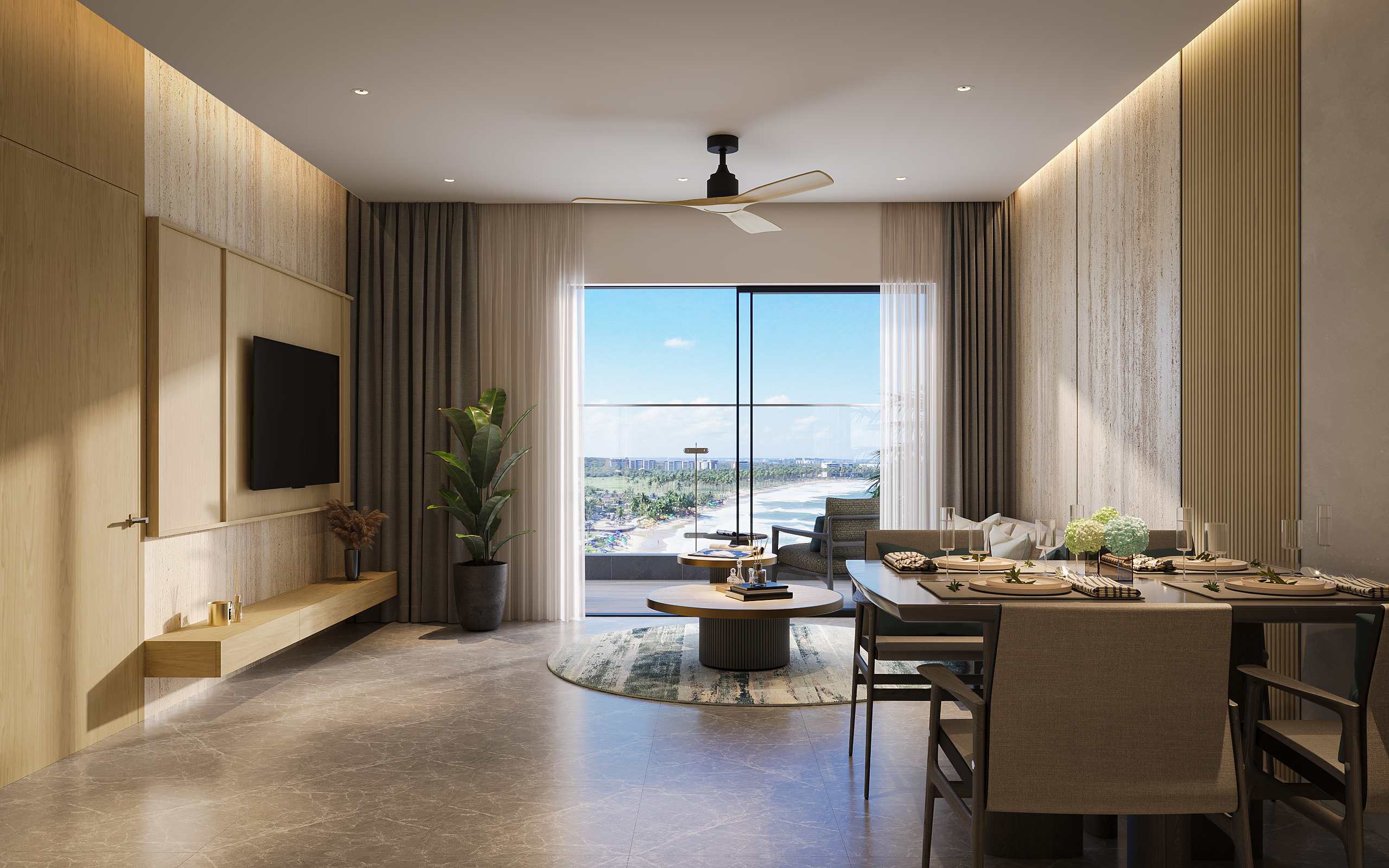 - Tầng 2 đến tầng 5: Khu thương mại dịch vụ với nhiều tiện ích như nhà hàng, quầy bar, spa, gym và khu vui chơi giải trí. Các tầng này được thiết kế theo mô hình “all in one”, đáp ứng mọi nhu cầu của cư dân và du khách.