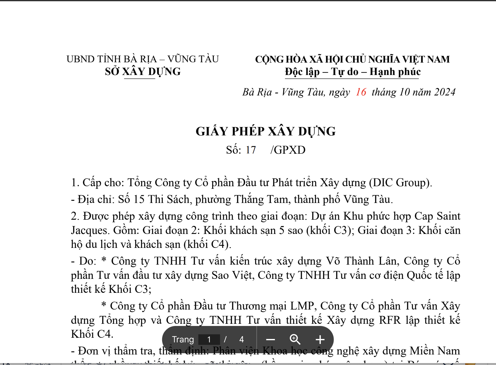 PHÁP LÝ DỰ ÁN CSJ (THÁP C4) VŨNG TÀU