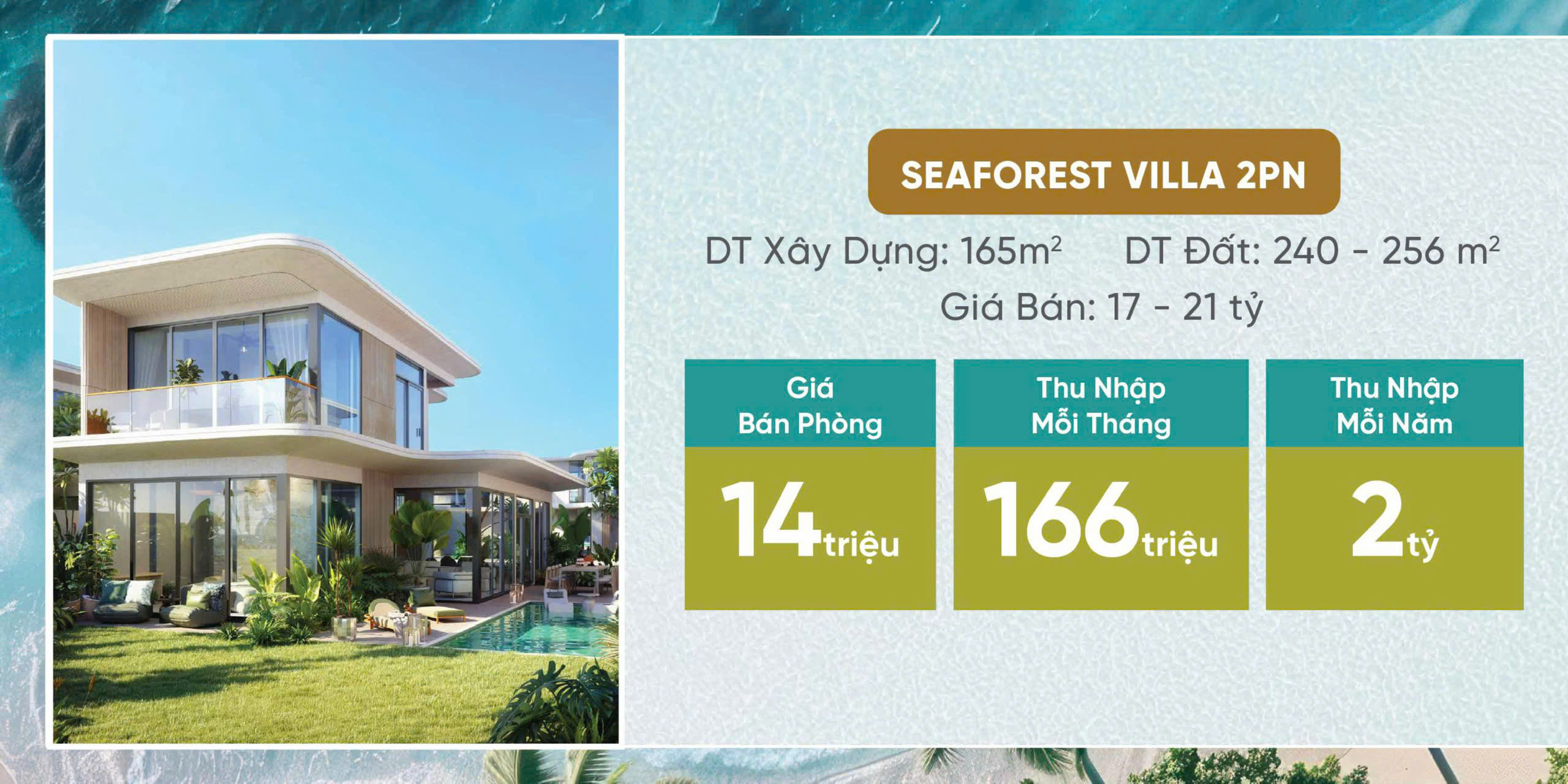 | Villa 2 phòng ngủ | từ 240m2 đến 256m2 | 17 tỷ đến 21 tỷ/căn |