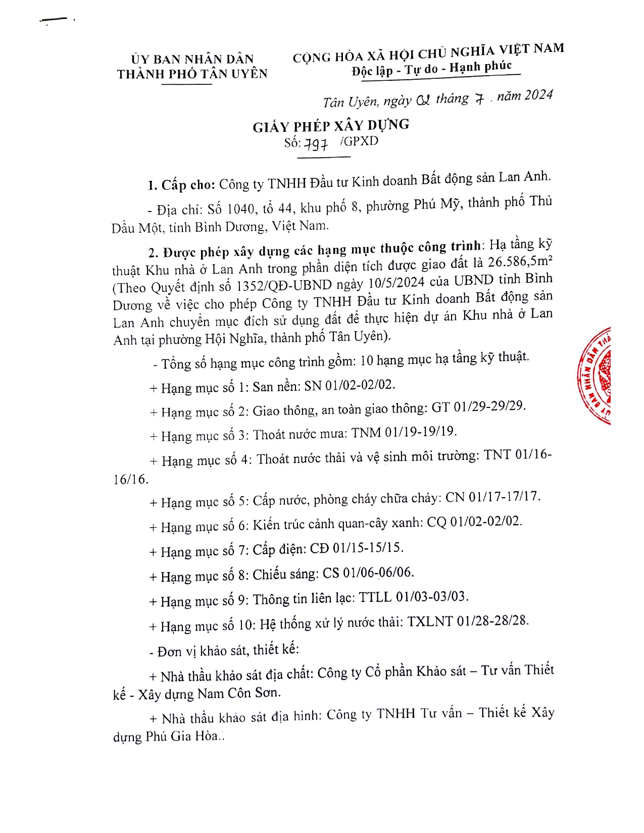 - Chủ đầu tư: Công ty TNHH Thương mại Bất động sản Lan Anh