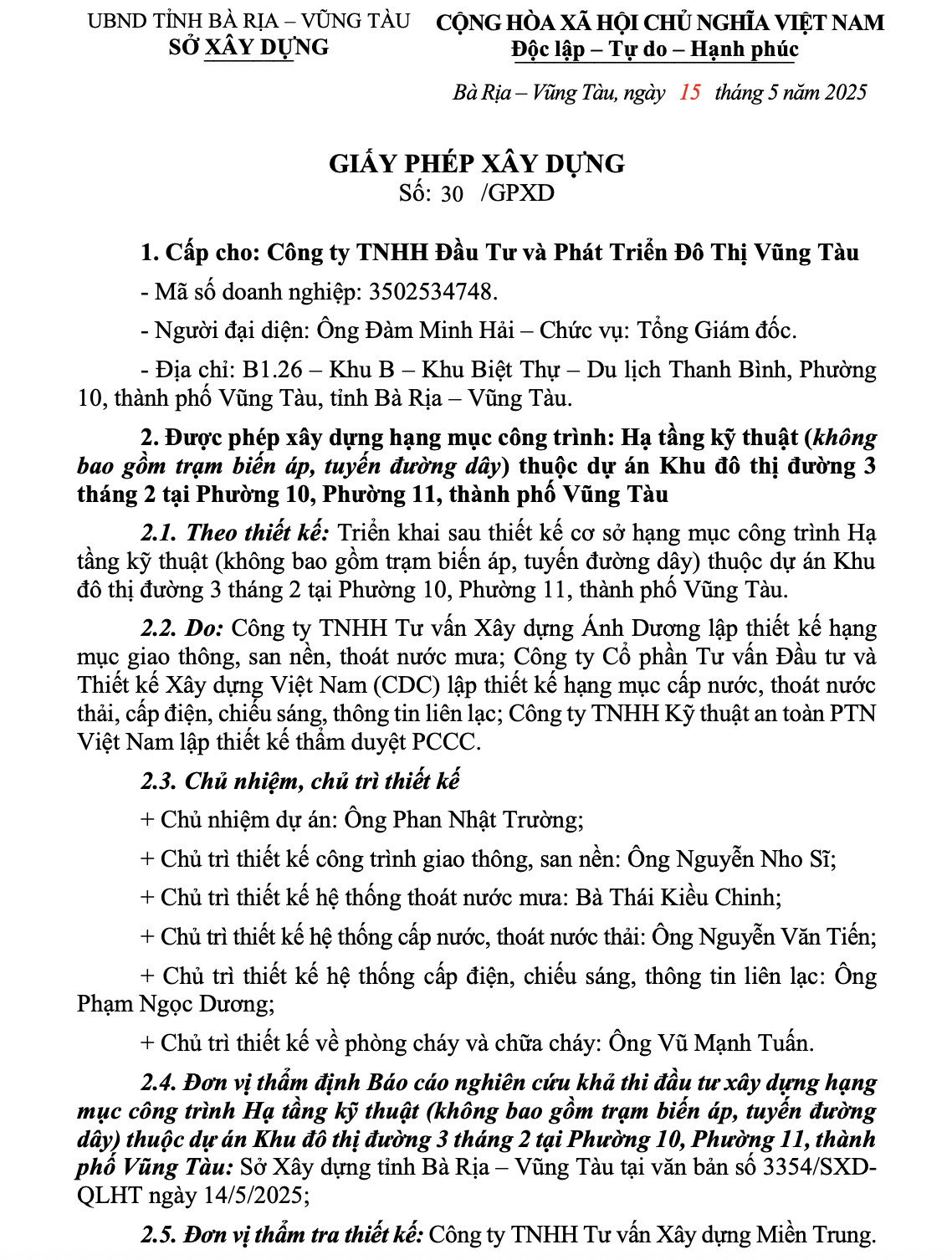 5. Giấy phép xây dựng Hạ tầng kỹ thuật