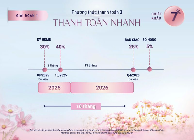 - Chiết khấu TT đợt 1 đúng hạn trước 6/7/2025: CK 4%
